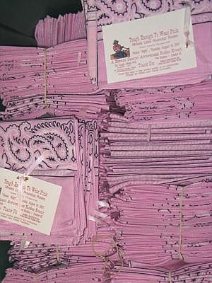MOSES LAKE — People tough enough to wear pink have the opportunity to purchase pink bandanas and beads before the Moses Lake Roundup Rodeo Thursday night.