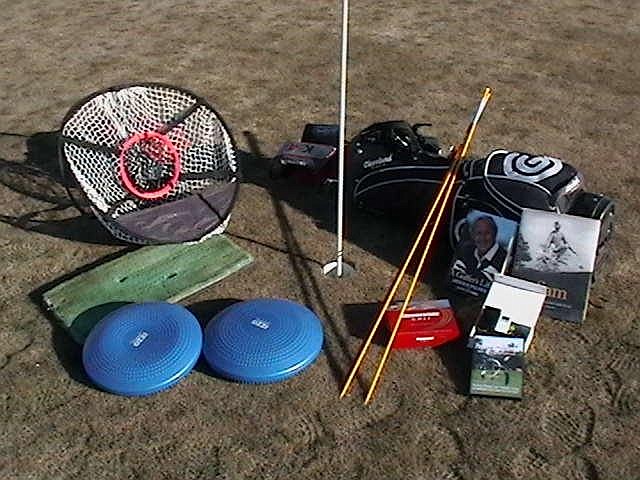 I have a couple of the PST tempo trainers available, and $129 includes a lesson. Or they can be found on-line at ProGolfTools.com. Balance discs are a great training device for gaining control of your balance, and developing core strength. Tour sticks are a simple tool for working on alignment and swing plane, chipping, putting, and more…google them to find (or just go to Lowes and pick up fiberglass dowels). Nets and mats allow your golfer to get in a few shots when time prohibits a trip to the course.