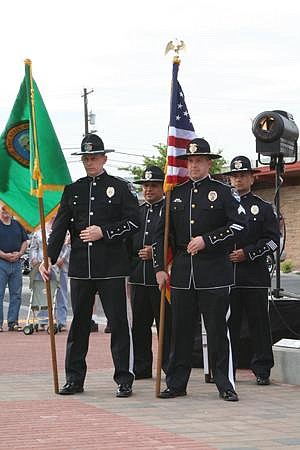 The honor guards from the Moses Lake Police Department and Grant County Sheriff’s Office participated in the memorial ceremony Tuesday.