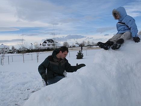The inside of the igloo is large enough for Brandon and Brianna Hansen, Despain and Max Heinzmann, 12, to fit inside sitting down. Brandon Hansen pointed at the baseball-sized windows they cut into the side of the structure.