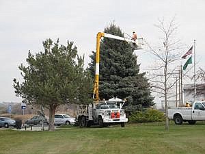 MOSES LAKE — Moses Lake city employees started preparing for Christmas by hanging lights on a tree in Neppel park.