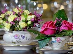 * Float delicate blossoms in tea cups or fill with miniature bouquets for colorful accents.