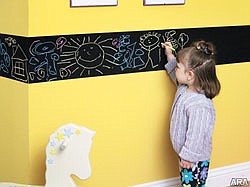* Let them write on the walls (or doors or dresser drawers). Educators recognize that giving kids a space to express their creativity or just think out loud is an important component of the learning process. Instead of creating paper clutter or buying a chalk or dry erase board, why not paint a wall, door or dresser drawers with Rust-Oleum Chalkboard or Dry Erase Paint. Chalkboard Paint comes in black, green and a tint base where you can choose from fun colors such as Periwinkle or Raspberry. Both Chalkboard and Dry Erase Paint can be applied over existing paint and instantly turn any surface into a space for math problems, poetry or homework assignments. It's also great for leaving messages or subtle reminders, like, "time to clean your room."