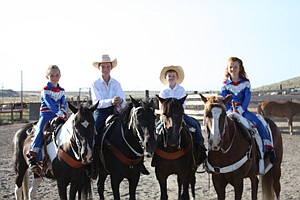 Caleb, Riley, Hannah and Davey McMillan are practicing the art and showmanship of trick riding.