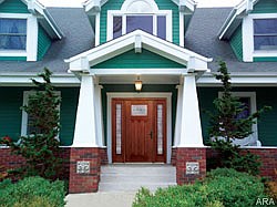 Complement the architecture: Many new door styles are designed to complement today's popular architectural designs including Craftsman, bungalow, Arts and Crafts, Mission and cottage style motifs. If your interior decor features beautiful mahogany wood, for instance, you can extend the look to the exterior with a Fiber-Classic Mahogany Collection door, which provides the style and warmth of mahogany but at a price value compared to premium wood doors.