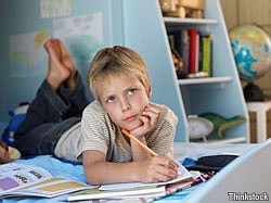Once he's well-rested, your youngster will need somewhere in his room to do homework. Some kids may opt to sit on their beds with a lap desk, but most will benefit from a dedicated space in their room where they can get organized and serious about their school work. Your young scholar will need a desk, comfortable chair and a place for his computer.