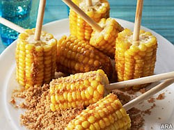 When it's time for dessert or a snack, fresh corn turns out to be a surprising but very appealing option. Corn on the Cob "Lollipops," from the kitchen of Florida chef Michelle Bernstein, are one irresistible treat to try. The ears are cooked until crisp-tender, then rolled in butter and spiced brown sugar. A way to eat your veggies and your dessert at the same time -- what could be better?