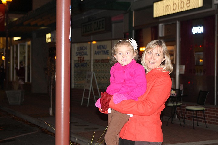She and her granddaughter Addy Carlile, 5, flipped the switch on a tree near i m b i b e downtown.