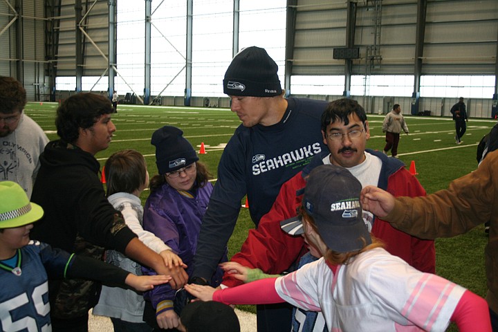 Head Coach Pete Carroll, punter Jon Ryan, cornerbacks Roy Lewis and Marcus Trufant, tight end John Carlson, Sea Gals cheerleaders, Blitz the mascot and even quarter back Matt Hasselbeck worked with more than 80 athletes and their coaches during the event.