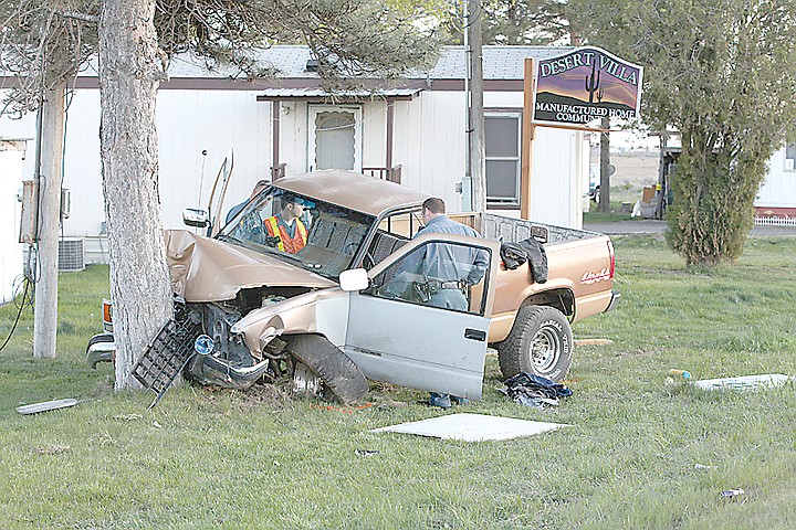 EPHRATA - A car and a pickup truck collided head-on, sending the truck into a tree Tuesday on state Route 28, 4 miles east of Ephrata.