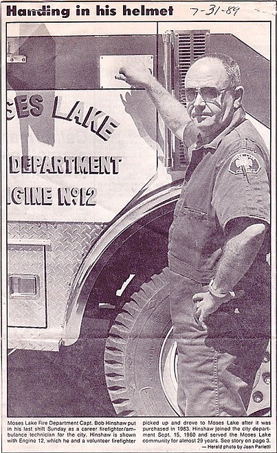 "Bob was a guy who breathed, ate and lived fire service," said David Helms, who worked with Hinshaw at the Moses Lake Fire Department. "Fire fighting was his life."