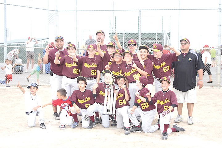 This weekend, the Moses Lake U-11 Americans baseball team took first place at the June Jamboree tournament in Moses Lake. They finished with a 5-0 record to claim the championship. The team is managed by Mike Valdez, who is assisted by coaches Cory Goodwin and Steve Juarez. The team consist of, top row, left to right, Daiman Vasquez, Cameron Duke, Cody Goodwin, Austin Valdez, Jordan Rios, Caleb Juarez, Payton Castro, and Michael Harrington; and front row, Ezekyel Ochoa, Hunter Garland-Cruz, Brian Mullin, Mikey Chase, and bat boy Zachary Valdez.