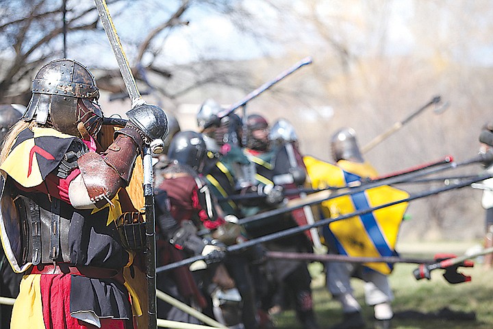 EPHRATA - Jennifer Schoenwald pushed on the helm of one of the fighters, dressed in a tabard and armor in Ephrata's Oasis Park.