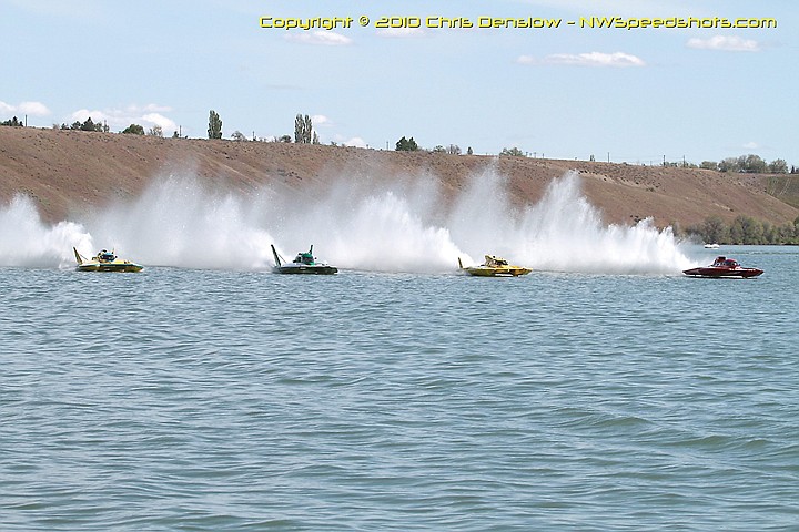Grand Prix's (GP's) feature supercharged big-block engines producing as much as 1500 horsepower, and the 20-26-foot craft attain speeds in excess of 160 miles-per-hour in the straight-a-ways with lap averages approaching 130 mph. Long a premier class on the east coast of North America, 'Grand Prix West' is the first club to organize GP racing on the west coast and consists mostly, but not exclusively, of west coast teams. This new club also boasts enthusiastic membership from across the country.