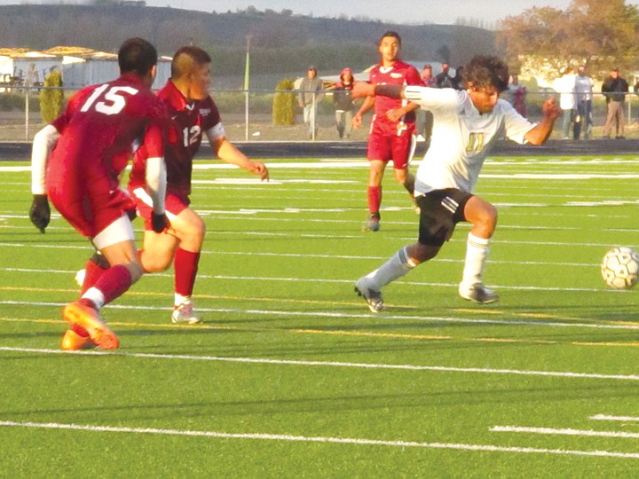 Royal came back to attack the Wahluke goal almost immediately. One Knight forward sent a perfect pass to the right front of the goal, but the forward on that side missed a header when he collided with Wahluke goalie César Tlatelpa, who was making a play.