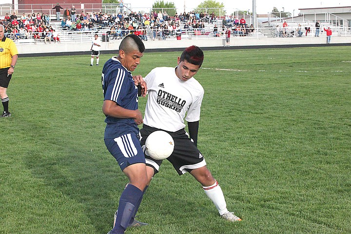 Earlier, Othello's Ivan Lopez was knocked down in front of the Bulldog's goal mouth but no penalty was called on a play where contact was clearly evident against the Huskie.