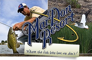 The MarDon Resort fishing dock has finally come alive with fish catching action. Crappie, Bluegill, Perch and catfish are showing up daily. Some very nice Trout and Bass are also being reported. The Walleye fishing continues to be tough for most boat anglers. I believe this is due to the vast amount of forage in the system this year. Levi & Mike Meseberg went bass fishing last night for only two hours, yet landed 12 Largemouth with some in the 4lb. catergory. The fish are especially fat and healthy this time of year. The summer keeps the water temperatures along the 80F mark and the reservoir water level slowly dropping, with a current water level of 1,031.7 ft. I can't wait for our winter walleye at the MarDon Dock. Medicare Beach has been showing some quality bank fishing for Rainbow Trout.