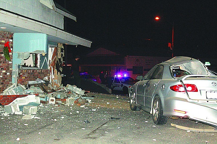 Soap Lake Police, Ephrata Police and Grant County sheriff's deputies all responded to Division Street near Second Avenue Southeast Friday night at about 8:30 p.m. after a four-door Mazda passenger car plowed into Hair Masters, a business located on the northwest corner of the street.