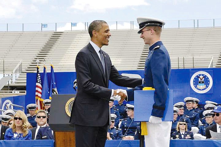 Royal High School 2008 graduate David Floren is congratulated by President Barack Obama upon graduating from the United States Air Force Academy on May 23 with a commission as a second lieutenant in the US Air Force and a Bachelor of Science in Mechanical Engineering. Floren will report to Laughlin AFB, TX in July to begin pilot training. He is the son of Don and Donna Floren of Royal City.
