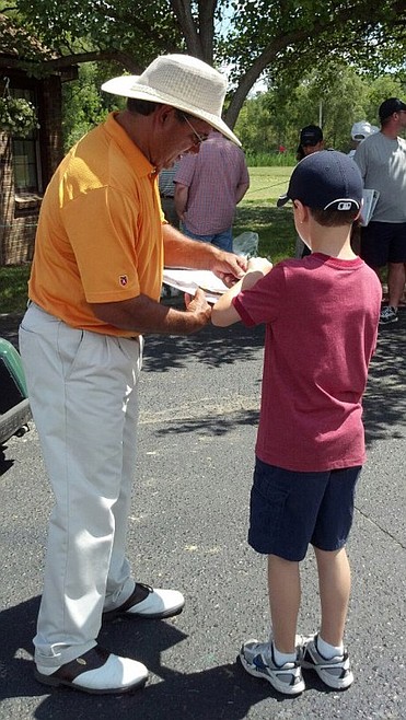 Ronnie signed autographs. He practiced on the driving range with Tom Kite and Fred Couples. Mark Calcavecchia introduced himself to Ronnie.