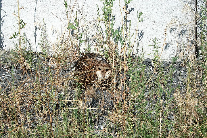 So the owls are a familiar part of the scene at the facility, and Moreno was concerned when he found an owl flopping around under a railroad car. The bird was injured, to the point where it couldn't fly when Moreno and the crew approached.