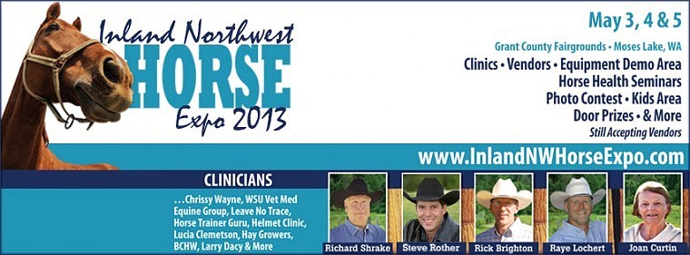 We are adding Vendors every week, so check back and see who is coming to the Inland NW Horse Expo, the weekend of May 3, 4 & 5, 2013