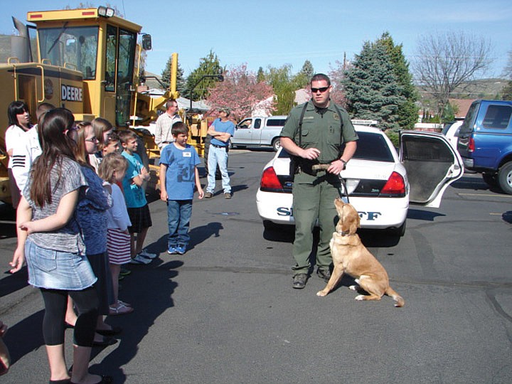 Tuesday, April 24, was Take our Daughters and Sons to Work Day for the children of Grant County employees. Grant County Sheriff's Deputy Beau Lamens and K-9 patrol dog Maddox demonstrate their work for Kaeden Vasquez, Tre Spencer, Kelly Husted, Natalie Triche, Caroline Triche, Makenna Campbell and Austin Huss.