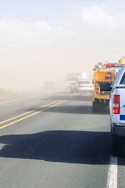 According to Trooper Darren Wright, high winds caused dust storms in the area, reducing visibility. Wright warned drivers to be cautious and slow down.