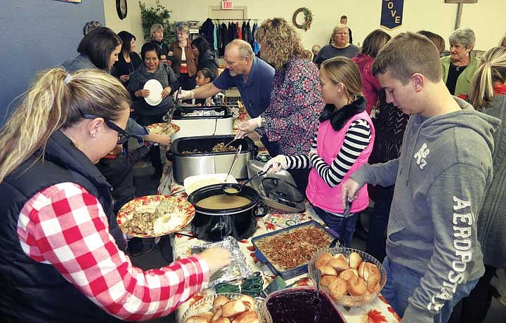 The food was prepared by numerous volunteers from New Life who cooked turkeys and made mashed potatoes, gravy, stuffing, green bean casseroles and other side dishes, along with a variety of pies and desserts.