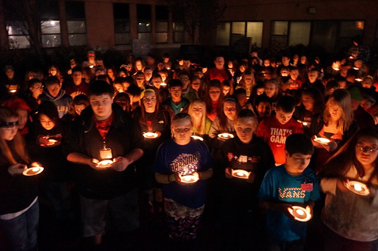 Students are seen here at the FMS Memorial reflecting on how they can make a positive difference.