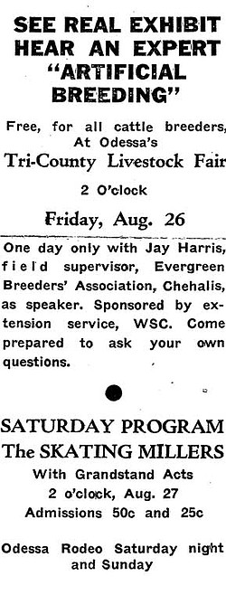 Highlighting the opening day events of the Tri-County Fair at Odessa on Friday, Aug. 26, will be a lecture and exhibit on artificial breeding, according to Ted Anderson, fair secretary.