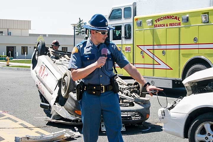 The was the story told by a mock DUI crash at Big Bend Community College Wednesday, part of the annual Community Partnership Against Substance Abuse program held Wednesday. A crowd of students watched the demonstration and listened to the emergency responders, police, fire and ambulance personnel, describe their roles and heard the police detail the charges that would be filed against the driver.