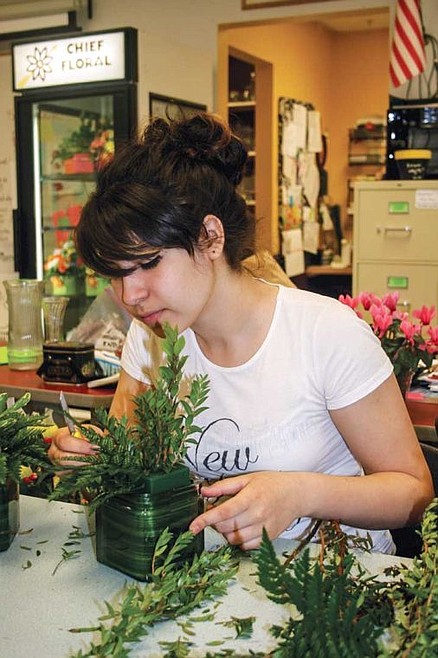 "Thirty. . . one?" said junior Stevee Lincoln. She was concentrating on an arrangement featuring deep red and bright yellow blossoms. Family and consumer science instructor Catherine McPherson said the shop had about 30 orders, and they had to be ready for delivery Friday morning.