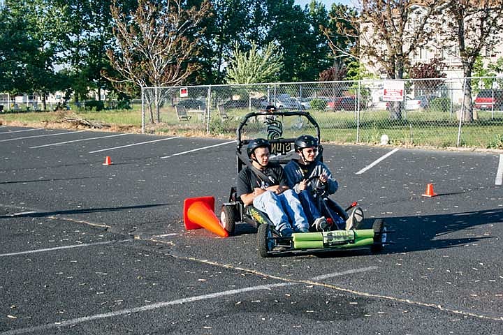 Moses Lake High School students also were invited to take a turn driving the go-kart owned by the Moses Lake Police Department, which is like any other go-kart most of the time. But it's set up so that it gives the driver and passenger the experience of being out of control, not much different from driving drunk.
