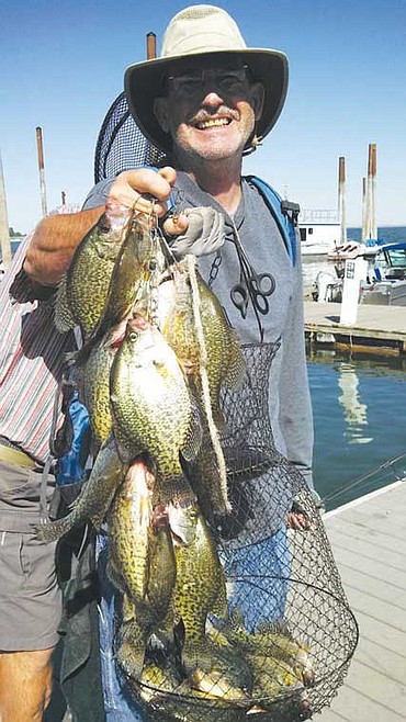 Fish the shady side of the weed matts, rock piles, beaver huts, & points of the sand dunes on the main lake. As for perch they are everywhere!!! We have limits of perch coming off the dock daily and reports of perch being caught by boaters all over the reservoir. Put a crappie jig and a worm on and you will find perch. There are suspended perch in the Lind Coulee or just about any hump in the sand dunes. The mouth of Frenchman's Wasteway at Potholes State Park has been a hot spot all summer for perch limits. The walleye's are harder to catch due to the vast perch explosion creating the best food availability in decades. Walleye troller's on the face of the sand dunes are landing walleye in 5 to 15 feet of water using Rapala Shad Rap's and Slow Death Hooks with night crawlers. For walleye fishers the North-East side of Goose Island is the go to place fishing from 5 to 25 feet deep on ledges. Take a lot of worms because the perch are great bait stealers. You will also catch some nice smallmouth bass and perch with walleye using the slow death rig with crawler. Crappie fishing has been the best it has in years for legal 9 inch crappie. The MarDon Dock in the early morning or just about anywhere you have a brush pile near 9-19 feet of water has been providing good crappie action. Small plugs work great and you get a lot of bass, bluegill and perch as by catch.