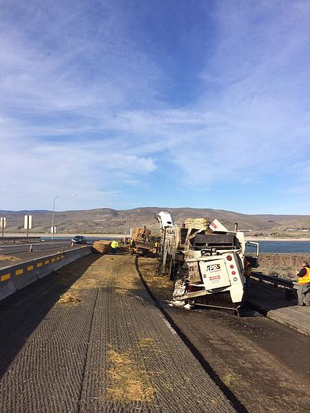 VANTAGE — Interstate 90 is down to one direction of travel at the Vantage Bridge after a collision involving a tractor-trailer this morning.