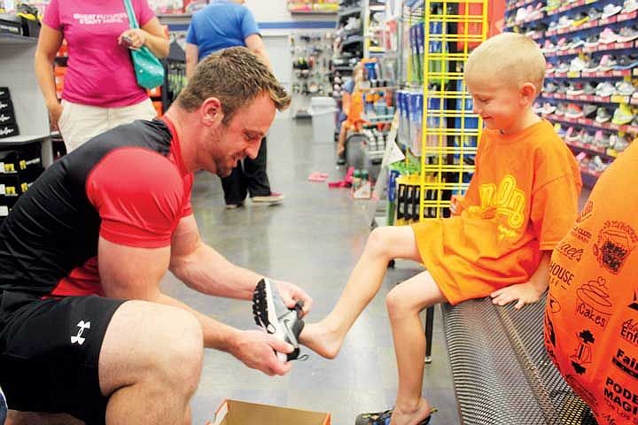 The pair spent a couple of hours at Big 5 Sporting Goods and Famous Footwear helping 55 Boys and Girls Club members shop for new athletic shoes - the culmination of their pilot summer sports program "Game On."