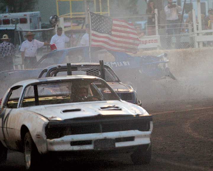 Cars crashed, tires spun and dirt flew during the opening event of the Moses Lake Roundup.