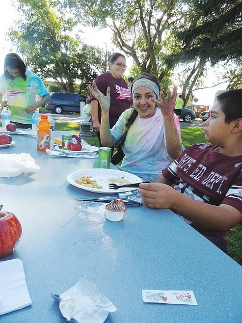 Martinez went to the free breakfast in Hund Memorial Park to replenish her energy. Because the Mattawa DYW program sponsored the run, she proudly wore her DYW medal of 2012.