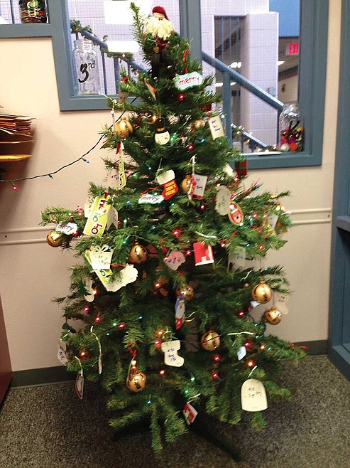 There is a Giving Tree in the main office with various tags on it. Approximately 87 children's names have been drawn to be given gifts from community members this holiday season.