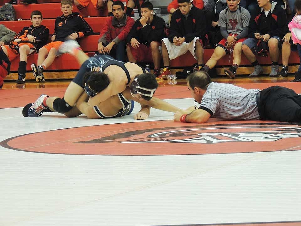 The Warriors looked especially tough in the early rounds. Of the first four boys to wrestle, three scored pins. Captains Sebastian Barajas and Christian Fabela led the way at 113 and 132 pounds respectively.