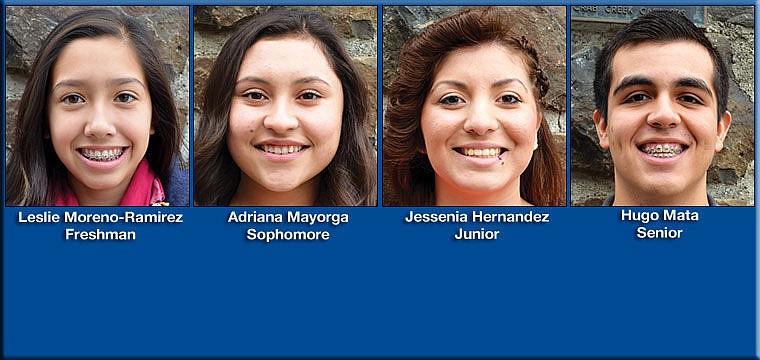 They are freshman Leslie Moreno-Ramirez, Sophomore Adriana Mayorga, junior Jessenia Hernandez and senior Hugo Mata.