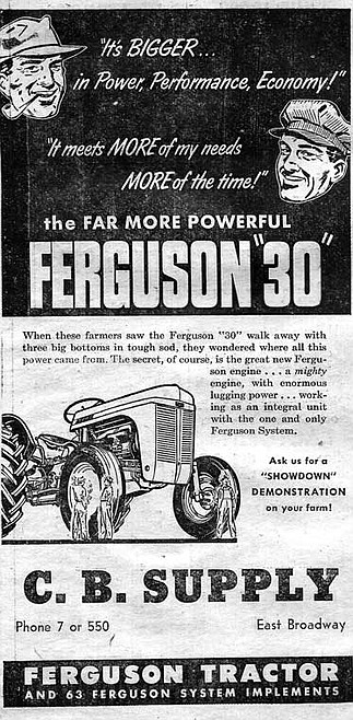The C.B. Supply Company sold Ferguson 30 tractors, as the ad indicates, but the company also sold Nash automobiles. Read on.