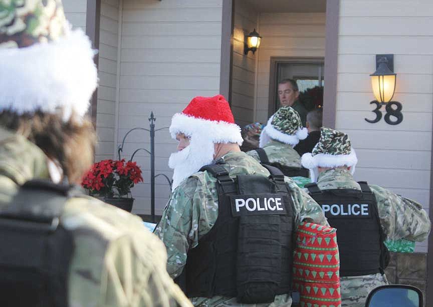 It was a sight to see, public officials approaching people's front doors with arm loads of gifts. And then stepping inside and sharing a few moments with the families.