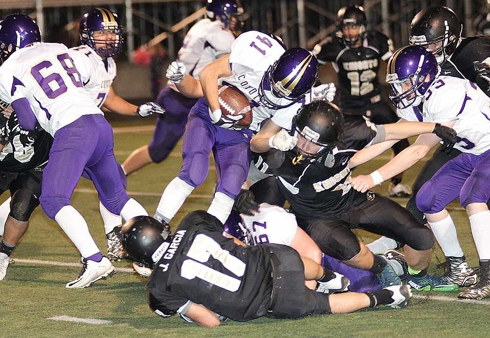 Junior quarterback Kaden Jenks passed for four touchdowns, and Joe Lang had three touchdowns on the ground to smother the Coyotes, 63-0, at the half.