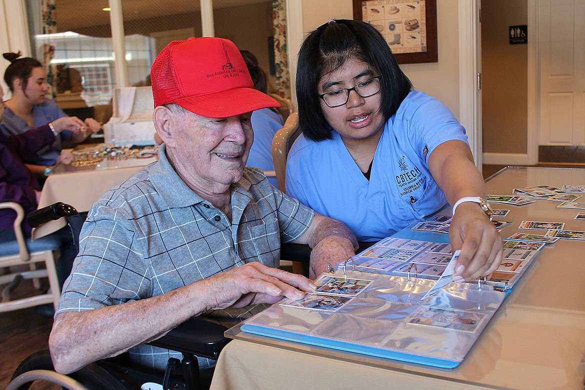 Students spend their time doing what all CNAs do, helping residents, sometimes with intimate daily tasks like taking a shower. Certified nursing assistants do more than help people with physical needs. On Wednesday afternoon CB Tech students were doing exercises with Summerwood residents, going through pictures and books, looking through the items in a jewelry box.