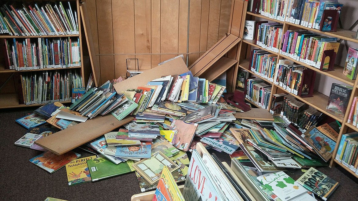 According to librarian Shannon Stewart, the unoccupied car rolled from the Harvest Foods parking lot and into the wall of the children’s section of the library.