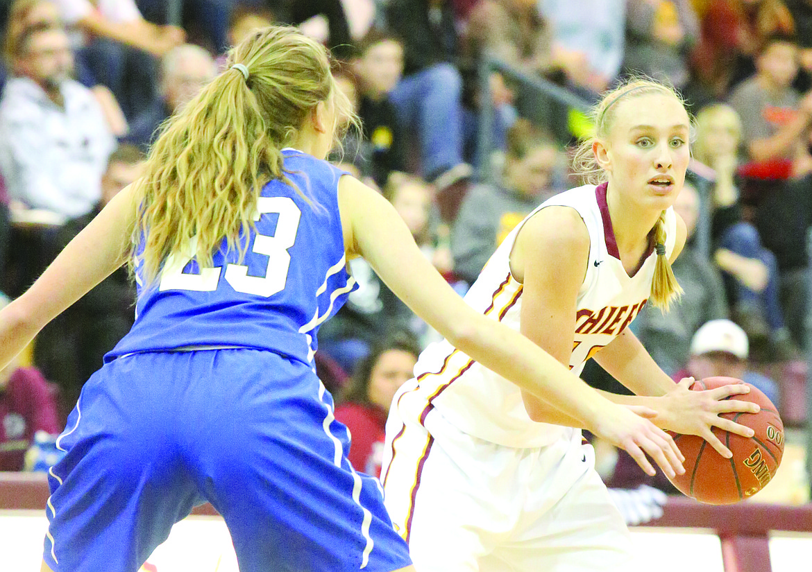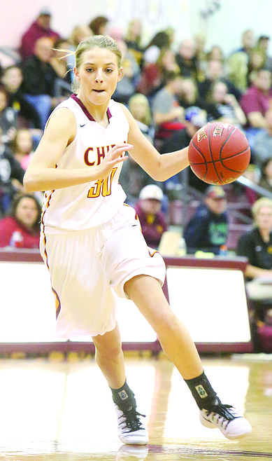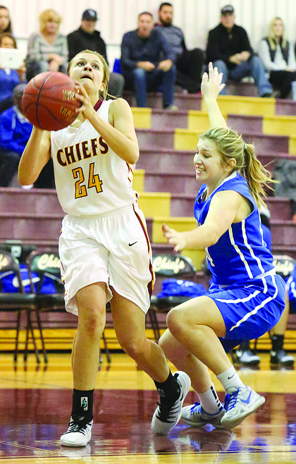 Connor Vanderweyst/Columbia Basin Herald - Moses Lake point guard Jamie Loera drives to the basket against Walla Walla.