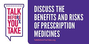 "Open and effective communication between patients and health care providers is important and helps to ensure patients make informed decisions about their health care and the medicines they take," said Dr. Janet Woodcock, director of FDA's Center for Drug Evaluation and Research. "The Talk Before You Take campaign provides a list of questions and other resources that can make it easier for patients