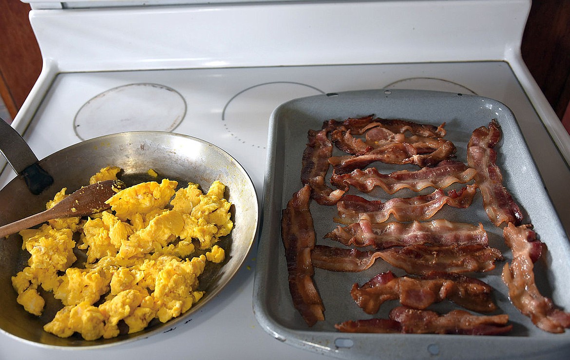 I had the opportunity to make up breakfast for a large crowd the other day. I chose this meal as I have finally gotten all of my chickens together into a coop and then went on one final egg hunt. Seventy five good eggs were found. I also had a few slabs of bacon left from a recent Zaycon Foods purchase.